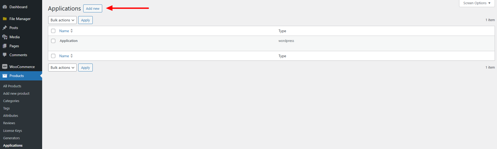 • Access the Applications Section: Go to your WordPress Dashboard.